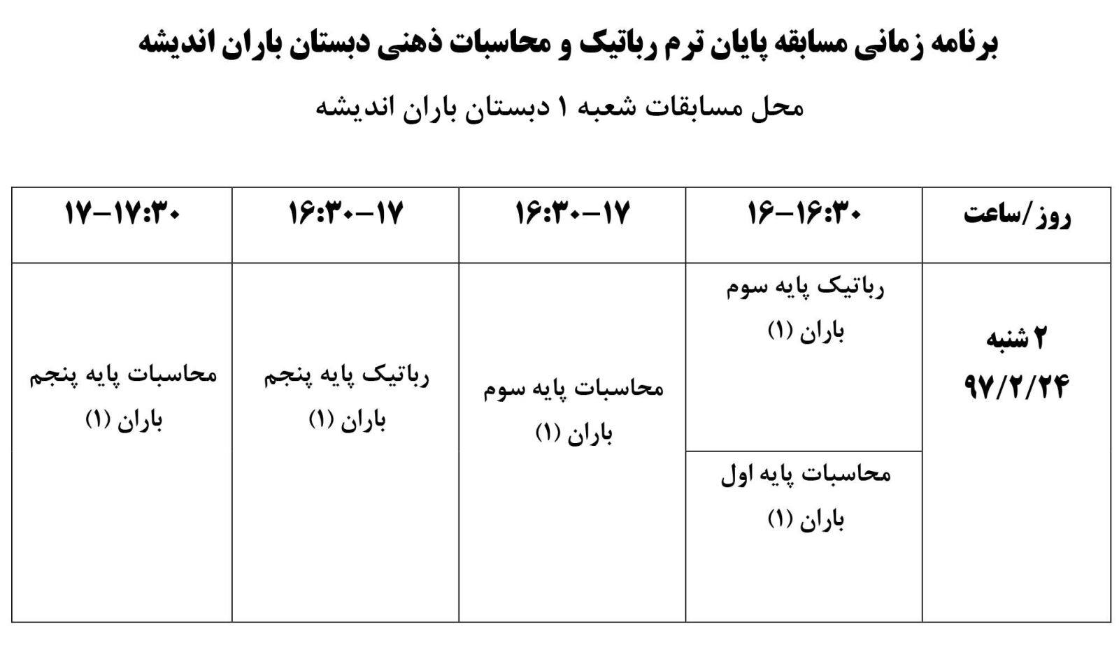 محل مسابقات شعبه 1 دبستان باران اندیشه می باشد.